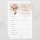 Beginnen Sie eine spannende Reise mit der Aquarellpinke, der Braun und dem Elfenbein-Teddy Dear Baby Wishings Spielkarte für eine Babydusche mit dem Thema "We Can Bearly Wait". Diese skurrile und abenteuerliche Karte lädt die Gäste dazu ein, ihre herzlichen Wünsche für das neue Baby zu teilen und sanfte Farben mit einer Touch von spielerischem Charme zu verbinden. Wenn Sie die bevorstehende Ankunft feiern, lass den Wünschen der Gäste für das kleine Set den Ton für ein magisches und unvergessliches Ereignis, voller Freude und Vorfreude für das spannende Abenteuer vor uns. Kontaktieren Sie mich für die passenden Artikel oder für die Anpassung, Blush Rose © Baby