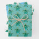 Das Trio der Geschenkverpackungsblätter zeigt kleine blaugrüne Meeresschildkröten-Muster auf Aqua, weißem und blauem Hintergrund