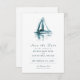 Passen Sie diese romantische, stilvolle, schöne, verschneite und frische Save the Date-Karte an, die mit einer original blauen Aquarellmalerei eines Segelbootes, vollständig anpassbar und Set als Vorlage für Ihre einfache Anpassung entworfen wurde. Frische und frische Gestaltung. Sie können auch den Eckstil für diese Einladung ändern. *Aquarellmalerei: 2013 © Natasa Borenovic Matching Wedding Invitation, RSVP Card und Brautparty Invite finden Sie in der Wasserfarbensegelbootsammlung.