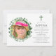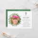 Trendy Wildwaldwald Grüne Taufe oder Weihnachts Einladungskarte, die schnell und einfach auf Ihre Bedürfnisse zugeschnitten ist. Es wird ein quadratisches Foto empfohlen.