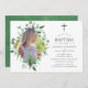 Trendy wilde Wald Wald Eukalyptusgrün Taufe oder Weihnachts Einladungskarte entwickelt, um schnell und einfach auf Ihre Besonderheiten angepasst werden. Es wird ein porträtförmiges Foto empfohlen.
