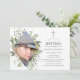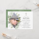Trendy wilde Waldtaufe oder taufende Einladungskarten, die schnell und einfach auf Ihre Wünsche zugeschnitten sind. Es wird ein porträtförmiges Foto empfohlen.