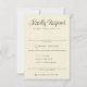 Eine einfache und an den Punkt-Antwort-Karte mit einer Zeile für eine Gesangsanfrage oder für Gäste, um Sie auf eine Nahrungsallergie und Platz für 3 Mahlzeiten zu warnen. Gerne stellen wir Ihnen diese weiter, bitte senden Sie uns eine Nachricht für Ihre Hilfe.