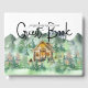 Trendy Aquarell Bergkubine Gästebuch. Gestaltungsmerkmale von Aquarellkabine und Berg, Kiefernwald etc. Persönlich mit Details in trendiger Schrift.