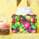 Papier in einer lebhaften Mischung aus Aquarellfrüchten wie Äpfeln, Zitronen, Birnen, Beeren und Kirschen auf einem dunklen Hintergrund. Das handgemalte Aussehen verleiht ihm ein lustiges, frisches Ambiente, das sich spielerisch und voller Energie anfühlt.