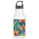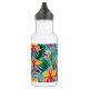 Diese Wasserflasche wird mit einem tropischen Blumendruck gezeigt. Passen Sie dieses Objekt an oder kaufen Sie es wie gezeigt. Lizenzierte Printwerbung