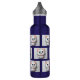 Eine metallische Wasserflasche mit einem glücklichen Kätzchen darauf, erinnert an die Beständigkeit und das Glück.