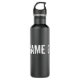Diese Wasserflasche wird in der matten schwarzen Farbe mit einem Spiel auf Text gezeigt. Passen Sie dieses Objekt an oder kaufen Sie, wie es ist.