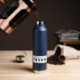Diese isolierte Wasserflasche wird in marineblau mit einem benutzerdefinierten Probennamen angezeigt. Passen Sie dieses Element an, und ändern Sie den Beispielnamen in Ihren Namen.