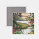 Schöne Reproduktion des gefestigten Glases aus Tiffany. Ein Wassergarten mit roten Lotus-Blume und Lilypads in einem Teich, sind auf diesem verkleideten Glass Magnet. Schön!