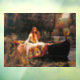 Fensterklammer mit dem Ölgemälde von John William Waterhouse The Lady of Shalott (1888). Eine schöne Frau in einem weißen Kleid entkommt auf einem Boot von ihrem Schicksal, um die ganze Welt durch einen Spiegel zu betrachten und einen Wandteppich davon zu weben - aber wenn sie Prinz Lancelot sieht, folgt der Fluch der Dame von Shalott zu ihrem Untergang. Helle Herbstfarben malen diese tragische Szene. Ein atemberaubendes Geschenk für Arthuriana-Enthusiasten und Pre-Raphaelite Sammler.