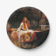 Teller mit dem Ölgemälde von John William Waterhouse The Lady of Shalott (1888). Eine schöne Frau in einem weißen Kleid entkommt auf einem Boot von ihrem Schicksal, um die ganze Welt durch einen Spiegel zu betrachten und einen Wandteppich davon zu weben - aber wenn sie Prinz Lancelot sieht, folgt der Fluch der Dame von Shalott zu ihrem Untergang. Helle Herbstfarben malen diese tragische Szene. Ein atemberaubendes Geschenk für Arthuriana-Enthusiasten und Pre-Raphaelite Sammler.