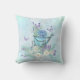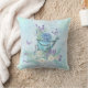 Dieses schöne Kissen verfügt über eine alte blaue Dose, die mit Hydrangeas und Lilacs gefüllt ist. Die Dose ist von einer Lilakenanlage, weißen Molkereien und kleinen weißen Beeren umgeben. Zwei schöne Schmetterlinge flattern herum.