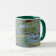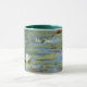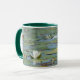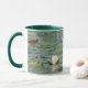 Watelily Lake Blume Wasserfarbe, Kaffee Tasse. Digitale Kunst: Eine von zwei Kunstausstellungen von Wasserlilien & Lilienpads im Stil von Claude Monet. Eine weiße Blume, umgeben von Lilienplakaten verschiedener Grüntöne.