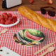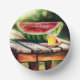 Wassermelone am Picnic-Tisch Pappteller