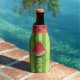 Rote und grüne Wassermelonenflagge mit Streifen und Samen.