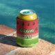 Reife rote Wassermelone-Scheiben Hintergrund. Benutzerdefinierter Text auf beiden Seiten.