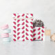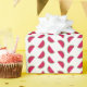 Vereinbarten rote Wassermelonescheiben des Spaßes mit grünen Rinden und schwarzen Samen in den Reihen.