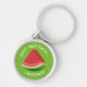 Reife rote Wassermelonen-Slice-Symbol. Benutzerdefinierte Hintergrundfarbe. Zwei benutzerdefinierte Textfelder im Kreis.