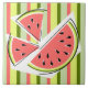 Cooles Design mit einer Retro-Touch mit stilisierten Wassermelonen auf gestreiftem Hintergrund. Ein individuell anpassbares Design für Sie, um mit Ihrem eigenen Text, Bildern und Ideen zu personalisieren. Ein originelles digitales Kunstbild.