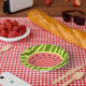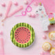 Design mit einer Retro-Touch inspiriert von einer Wassermelone mit schwarzen Samen auf einem rosa Hintergrund und Streifen in grün und schwarz. Ein individuell anpassbares Design für Sie, um mit Ihrem eigenen Text, Bildern und Ideen zu personalisieren. Ein originales digitales Kunstbild von QuirkyChic.