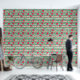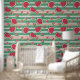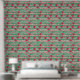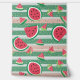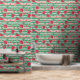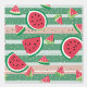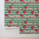 Die Tapete hat ein sommerliches Muster aus Wassermelonen und grünen Streifen.