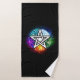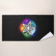 Künstlich gezeichnet, leuchtendes Pentagramm mit fünf magischen Elementen, Wasser, Erde, Feuer, Astral, Luft auf schwarzem Hintergrund. Wiccan Pentagram. Wicca