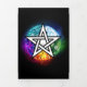 Künstlich gezeichnet, leuchtendes Pentagramm mit fünf magischen Elementen, Wasser, Erde, Feuer, Astral, Luft auf schwarzem Hintergrund. Wiccan Pentagram. Wicca