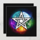 Künstlich gezeichnet, leuchtendes Pentagramm mit fünf magischen Elementen, Wasser, Erde, Feuer, Astral, Luft auf schwarzem Hintergrund. Wiccan Pentagram. Wicca