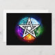 Künstlich gezeichnet, leuchtendes Pentagramm mit fünf magischen Elementen, Wasser, Erde, Feuer, Astral, Luft auf schwarzem Hintergrund. Wiccan Pentagram. Wicca