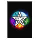 Künstlich gezeichnet, leuchtendes Pentagramm mit fünf magischen Elementen, Wasser, Erde, Feuer, Astral, Luft auf schwarzem Hintergrund. Wiccan Pentagram. Wicca