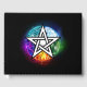 Künstlich gezeichnet, leuchtendes Pentagramm mit fünf magischen Elementen, Wasser, Erde, Feuer, Astral, Luft auf schwarzem Hintergrund. Wiccan Pentagram. Wicca