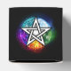 Künstlich gezeichnet, leuchtendes Pentagramm mit fünf magischen Elementen, Wasser, Erde, Feuer, Astral, Luft auf schwarzem Hintergrund. Wiccan Pentagram. Wicca