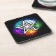Künstlich gezeichnet, leuchtendes Pentagramm mit fünf magischen Elementen, Wasser, Erde, Feuer, Astral, Luft auf schwarzem Hintergrund. Wiccan Pentagram. Wicca