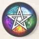Künstlich gezeichnet, leuchtendes Pentagramm mit fünf magischen Elementen, Wasser, Erde, Feuer, Astral, Luft auf schwarzem Hintergrund. Wiccan Pentagram. Wicca