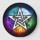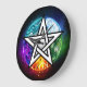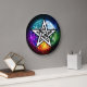 Künstlich gezeichnet, leuchtendes Pentagramm mit fünf magischen Elementen, Wasser, Erde, Feuer, Astral, Luft auf schwarzem Hintergrund. Wiccan Pentagram. Wicca
