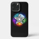 Künstlich gezeichnet, leuchtendes Pentagramm mit fünf magischen Elementen, Wasser, Erde, Feuer, Astral, Luft auf schwarzem Hintergrund. Wiccan Pentagram. Wicca