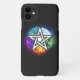 Künstlich gezeichnet, leuchtendes Pentagramm mit fünf magischen Elementen, Wasser, Erde, Feuer, Astral, Luft auf schwarzem Hintergrund. Wiccan Pentagram. Wicca