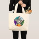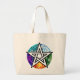 Künstlich gezeichnet, leuchtendes Pentagramm mit fünf magischen Elementen, Wasser, Erde, Feuer, Astral, Luft auf schwarzem Hintergrund. Wiccan Pentagram. Wicca
