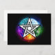Künstlich gezeichnet, leuchtendes Pentagramm mit fünf magischen Elementen, Wasser, Erde, Feuer, Astral, Luft auf schwarzem Hintergrund. Wiccan Pentagram. Wicca