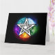 Künstlich gezeichnet, leuchtendes Pentagramm mit fünf magischen Elementen, Wasser, Erde, Feuer, Astral, Luft auf schwarzem Hintergrund. Wiccan Pentagram. Wicca