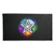 Künstlich gezeichnet, leuchtendes Pentagramm mit fünf magischen Elementen, Wasser, Erde, Feuer, Astral, Luft auf schwarzem Hintergrund. Wiccan Pentagram. Wicca