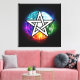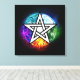 Künstlich gezeichnet, leuchtendes Pentagramm mit fünf magischen Elementen, Wasser, Erde, Feuer, Astral, Luft auf schwarzem Hintergrund. Wiccan Pentagram. Wicca