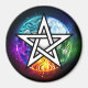Künstlich gezeichnet, leuchtendes Pentagramm mit fünf magischen Elementen, Wasser, Erde, Feuer, Astral, Luft auf schwarzem Hintergrund. Wiccan Pentagram. Wicca