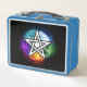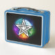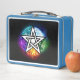 Künstlich gezeichnet, leuchtendes Pentagramm mit fünf magischen Elementen, Wasser, Erde, Feuer, Astral, Luft auf schwarzem Hintergrund. Wiccan Pentagram. Wicca
