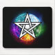Künstlich gezeichnet, leuchtendes Pentagramm mit fünf magischen Elementen, Wasser, Erde, Feuer, Astral, Luft auf schwarzem Hintergrund. Wiccan Pentagram. Wicca