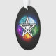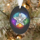 Künstlich gezeichnet, leuchtendes Pentagramm mit fünf magischen Elementen, Wasser, Erde, Feuer, Astral, Luft auf schwarzem Hintergrund. Wiccan Pentagram. Wicca