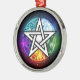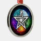 Künstlich gezeichnet, leuchtendes Pentagramm mit fünf magischen Elementen, Wasser, Erde, Feuer, Astral, Luft auf schwarzem Hintergrund. Wiccan Pentagram. Wicca