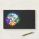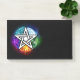 Künstlich gezeichnet, leuchtendes Pentagramm mit fünf magischen Elementen, Wasser, Erde, Feuer, Astral, Luft auf schwarzem Hintergrund. Wiccan Pentagram. Wicca