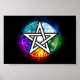 Künstlich gezeichnet, leuchtendes Pentagramm mit fünf magischen Elementen, Wasser, Erde, Feuer, Astral, Luft auf schwarzem Hintergrund. Wiccan Pentagram. Wicca